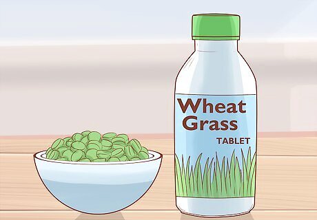 Take wheatgrass tablets. If you don't have the time to mix up wheatgrass or you don't like drinking it, you can buy wheatgrass supplements. These usually come in tablet form and should just contain wheatgrass powder. Some supplements might also have rice powder to bind the wheatgrass powder into tablet form. Follow the manufacturer's instructions about dosing. For example, you may need to take several wheatgrass tablets with water or juice.