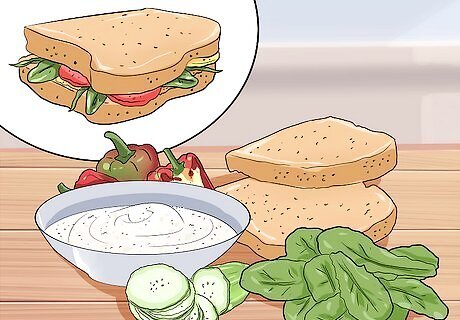 Change how you eat. Avoid trying to eat a few large meals each day, as this can make you feel nauseous. Instead, eat as much of a meal as you can whenever you feel the hungriest during the day. Throughout the day you should have snacks every few hours, without waiting until you feel hungry. Pack things like trail mix or protein shakes to make up the difference in calories if you can't eat a full meal. Drink most of your fluids between meals and/or snacks instead of with them. Fluids will fill your stomach and make you feel like you are full but without having consumed enough calories, so it’s best to drink fluids when you aren’t eating. High energy foods like nut butter on toast, granola and whole milk, pudding, full-fat yogurt, smoothies, cheese & crackers, dried fruit with nuts, and avocado toast will fuel you with every bite.