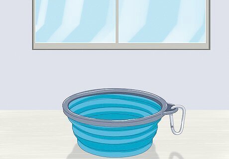 Bring a portable water bowl. Your dog might become restless or anxious if it is thirsty. Bring a portable water bowl along with you to ensure that your dog is hydrated. Ask a server to bring a glass of water and pour the water into your dog’s bowl. Make sure to replenish the bowl as needed, especially on hot days. Place your dog’s bowl under the table to prevent it from being knocked over by servers' and guests’ feet.