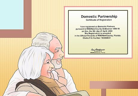 Consider the benefits. There are a variety of benefits of having a domestic partnership over a marriage. There are also benefits to having a domestic partnership instead of just living together. Some of these include: The ability to retain separate property to pass to your pre-existing descendents The ability to visit in hospitals if necessary The ability to inherit in some situations The ability to make decisions as the “next of kin” as necessary The ability to take advantage of employee benefits earned by your partner in many cases