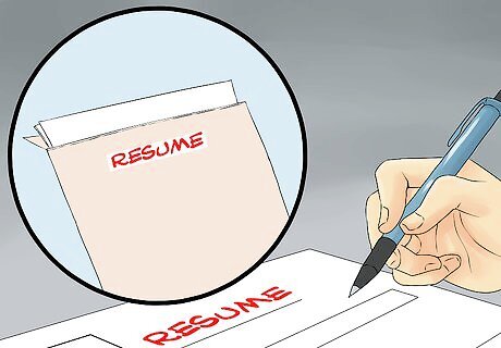 Create a resume. If you haven’t had many (or any) previous jobs, think about how your experiences (internships, leadership roles in college activities) can transfer to the position you’d like to have. For any college graduate, you should think about the kinds of soft skills at which you excel -- communication, both written and oral, leadership, organization, teamwork, etc. It will be important to highlight these on your resume. These are also skills that can help in getting a job. Check out some templates for specific suggestions on how to format your resume. Highlight the skills you have from volunteer opportunities, internships, and any part-time jobs you have had. Mention any specific field-related knowledge you have – certificates, relevant computer programs, formats or styles of work, or languages. Ask former supervisors or employers for letters of recommendation – they will be able to tell possible employers about your work ethic, teamwork, and interest in the field.