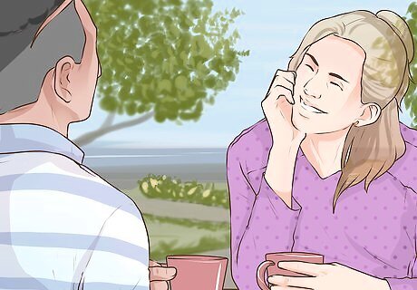 Act friendly. When you're meeting someone new, you have to be able to hold a conversation. That means you need to both ask questions about the other person and answer their questions in return. It's a way of getting to know one another. It involves both giving to the conversation and actively listening to what the person has to say. You could ask them, "What's your favorite food?" If they say, "Pizza!" you could say, "Pizza is my favorite, too! We made it at home last week." That way, you're offering something about yourself (what your favorite food is), as well as offering them something to respond to ("We made it at home last week.") They might say, "Really? I've never made pizza before. Is it hard?"