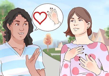 Listen to your friend. Everyone likes to talk about what's going in their life. When you want to be a friend to someone, you can't just talk about what you're doing all the time. You also need to give your friend a chance to talk, too. Ask them how their day is going, and see what they say. Respond to what they say. For instance, if they say, "I'm really sad," say, "I'm sorry. Why are you sad?" In addition, it's important to listen when your friend is going through a tough time. Everyone has problems from time to time, and it usually helps to talk about it. When your new friend is feeling down, ask them what's wrong. See if they want to talk about it, and then listen to what they have to say. Being a good friend means being there for them when they need someone to listen. Social skills come easier to some people than others. If you want some practice, ask your parents. They can help you build your listening skills. You can also use nonverbal listening cues. Look the person in the eyes, nod when they speak, and give them small affirming words (like "uh-huh") to let them know that you're listening. Have open body language towards the person: face them and don't cross your arms.