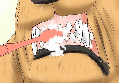 Brush your dog's teeth. If you have a dog, one of the most important things you can do is to provide him with good oral health care. Many canine health issues are the result of poor oral hygiene. Brush your dog's teeth at home to avoid expensive medical bills down the road. Buy a toothpaste that is specially formulated for canine's. "People" products aren't safe for dogs. Brush your dog's teeth as often as he will allow. Ideally, you will brush his teeth each day. Other animals, such as cats, need good oral hygiene, too. Talk to your vet about how to care for your pet's teeth.