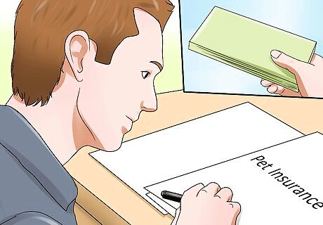 Purchase pet insurance. You can buy health insurance for your pet. This is a great option if you have an older animal or one with severe or chronic injury or illness. It's also a great way to be proactive when you adopt a new pet. Look at different plans. Just like health insurance for people, there are a variety of options for animals. You can get a plan that will cover basic emergencies, like a sudden injury. You can also get more comprehensive plans that will cover all types of care. Ask your vet if there is a particular company that is easy to work with. You also want to make sure that your vet accepts the insurance you choose.