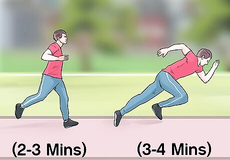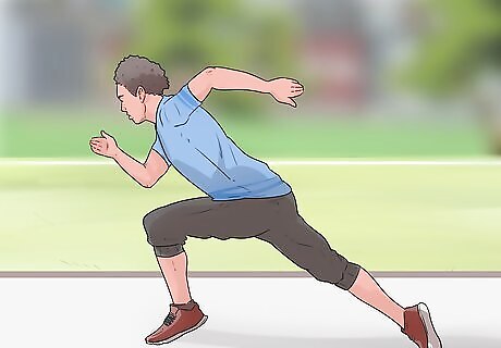 Run to improve your cardiovascular conditioning. Go at a moderate pace until you start to get tired, then take a short rest break before resuming your run. You can also structure your run in intervals, running for 3-4 minutes, walking or resting for 2-3 minutes, then running for another 3-4 minutes and so on. By running frequently and increasing your distance over time, you’ll develop the endurance you need to keep you in the game. Running laps on a track can help you keep up with your time and distance. Schools, churches and recreation centers sometimes open their tracks for community use.