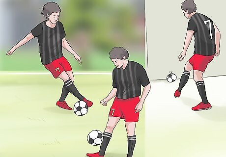 Practice your ball handling skills. Move on to some basic technical exercises. Useful handling drills include dribbling, juggling and passing to yourself. These exercises dial in your focus, coordination and reaction time by forcing you to keep your eye on the ball. Work on ball handling for 10-15 minutes at the beginning and end of each practice session. Equipment like ropes and cones will allow you to map out your handling drills more effectively. Lionel Messi Lionel Messi, Professional Soccer Player Push your game, experiment, and learn new things. "The day you think there is no improvements to be made is a sad one for any player."