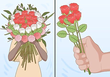 Set a budget for your bouquet. Flower arrangements can get expensive quick, depending on the size of the bouquet and types of flowers selected. Set a price range for your bouquet, whether it be $15 or $50. Remember to include other gifts, like greeting cards, gift cards, or chocolates, when you are setting your price.