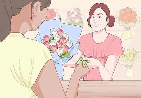 Visit a local flower store to buy your flowers in person. Find a local florist or visit the floral section of your neighborhood grocery store. A florist will have a wide variety of options and will have expert advice to assist you with your bouquet and design. Depending on your grocery store floral department, you can find great bouquet options or individual flowers you can use to design your own.