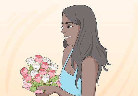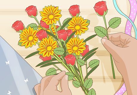 Arrange a bouquet yourself for a heartfelt touch. You can select a single, pretty flower, or gather a few different flower types and arrange them into a bouquet yourself. Arranging your flowers yourself will create a thoughtful gift for your mother.