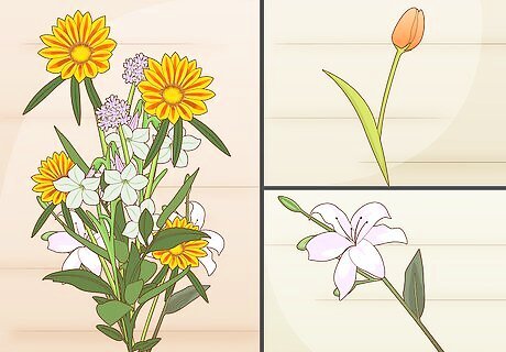 Choose a bouquet of Mom's favorite flowers. If you aren't positive of her favorites, select flowers in her favorite colors. Deciding on your flowers based on Mom's favorites will ensure you choose a special, thoughtful bouquet. When in doubt, pick a mixed collection of spring flowers.