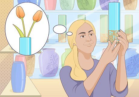 Pick out a vase that fits your mother's style and matches your flowers. Purchase your vase either at a local florist or craft store. If you are ordering flowers online, select your vase before checking out. You can go with a solid colored vase or get creative and use items like a pitcher vase or watering can. Colored mason jars or DIY terrarium containers can make unique flower accessories. If you are crafty, consider decorating your vase with ribbon.