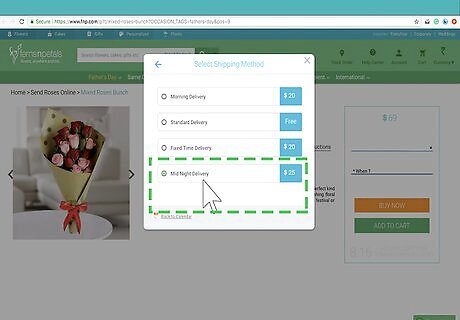 Choose your delivery method and schedule your delivery. If you will be celebrating Mother's Day in person, pick up your flowers at a local florist or grocery store. Pick up your flowers the day before or the day of Mother's Day to ensure freshness. If you live further away, schedule your delivery so the flowers arrive on the morning of Mother's Day.
