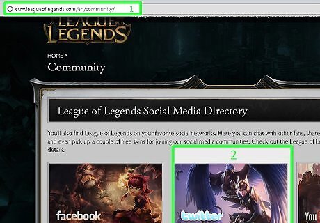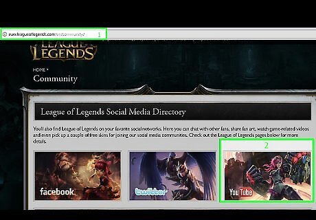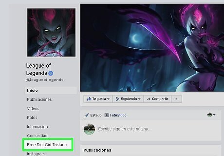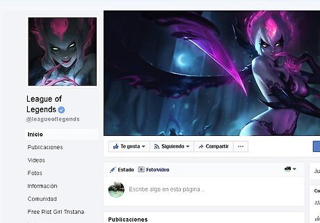 Locate the official League of Legends Facebook page. This can be achieved by looking up "League of Legends" into your Facebook search bar and selecting the page with the verified tick.