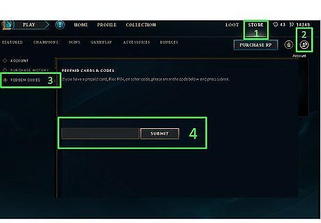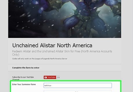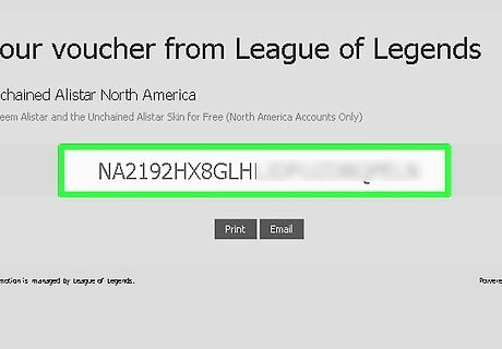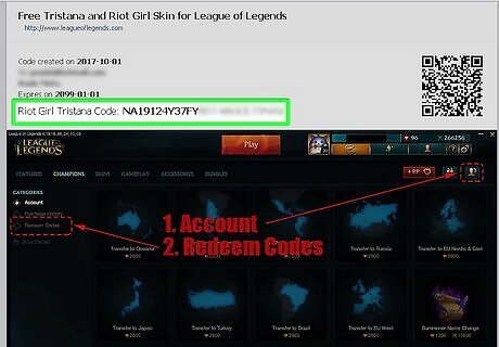 Redeem the code. First, you will need to log into League of Legends. Next, open up the store and select codes. You can now enter the code that you have been given into the black rectangle. Once you click submit, the new skin (and Tristana champion if you do not already own her) will be applied to your account. Each skin code can only be used and will only work if you have selected the correct server region for your account. If you experience any sustained difficulties, it is best to open up a ticket with the League of Legends customer support team.