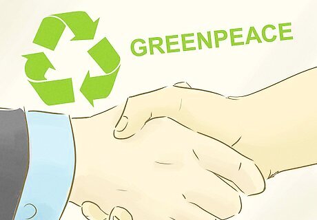 Donate to Greenpeace if you do not have time to spare. If you are not looking to commit your personal time to Greenpeace, a great way to get involved is to donate to the organization, or even to a specific campaign. Donations allow Greenpeace to remain independent and able to act against any corporation or government without fear of losing their funding or ability to change the world. Donations are accepted online via credit card or PayPal. You can also donate with a credit card over the phone, or mail a check to Greenpeace's street address. If you are paying by credit card, you can elect to make a monthly contribution of a specific amount. You will automatically be charged on the same day each month. The Greenpeace website offers further information about giving through estates and trusts, as well as gifting non-cash assets.