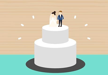 Choose a wedding cake designer and design. You can either use your caterer or hire a separate wedding cake designer to make the cake for your big day. Choose a design that reflects the style of your wedding and taste that you and your guests will enjoy. You can get many different types of cakes from simple sheet cakes to more elaborate tiered designs. The benefit of having a tiered design is that you can have different flavors to reflect the different tastes of you and your guests.