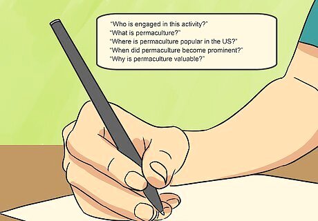 Write down questions as you research. The goal of your speech should be to help your audience understand and appreciate the topic you’ve chosen. Start by writing down questions you have as your research your topic. These will likely be the same kinds of questions your audience would have. As your understand of the topic develops, write out answers to the questions. Depending on the topic, you might start with questions like Who? What? Where? When? and Why? For example, with the topic of permaculture in an urban environment, you might ask “Who is engaged in this activity?,” “What is permaculture?,” “Where is permaculture popular in the US?,” “When did permaculture become prominent?,” and “Why is permaculture valuable?” Answering these questions will go a long way towards fleshing out your speech.