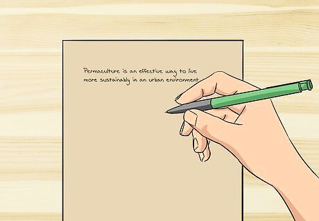 Craft a thesis statement. Your thesis statement is the question or statement the motivates your speech. For example, in the context of permaculture, you thesis statement might be “Permaculture is an effective way to live more sustainably in an urban environment.” If you have trouble coming up with a thesis statement, look back to the five W questions you asked and answered. They will help guide you to an interesting and effective thesis statement. For example, if your topic is the role of African American soldiers in the Union Army during the Civil War, you might find that most of the soldiers came from a particular state or area. Your thesis could then focus on why that area provided so many soldiers.