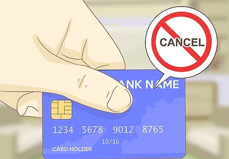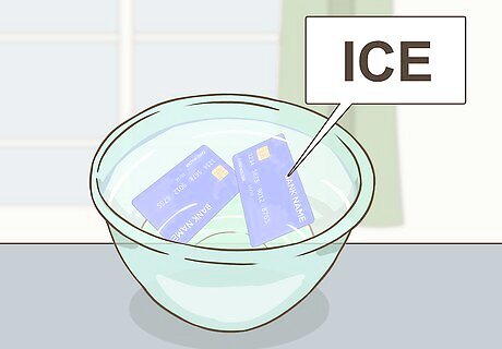Freeze your credit cards in ice. Instead of cancelling, you can simply put your credit cards in a bowl of water and store it in the freezer. Focus on paying down your balances, which will also increase your credit score. To get spending under control, you might want to meet with a credit counselor. They can help you develop a budget and identify areas where you overspend.