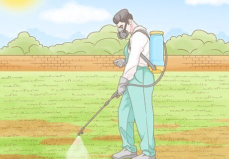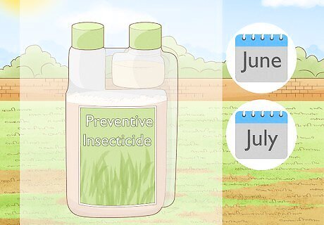 Apply a preventive insecticide for next year. There is another type of pesticide that can help control grubs, and it’s a preventive pesticide that’s meant to kill upcoming generations. Typically, this type of pesticide is applied in June or July, after you’ve already sprayed with a curative pesticide. To protect pollinators such as bees from the pesticide, mow your lawn to remove flowering weeds before applying the product. To stop your grass from burning, water your lawn thoroughly all summer after applying the insecticide. Preventive pesticides include those sold under the brand names Merit and Mach 2.