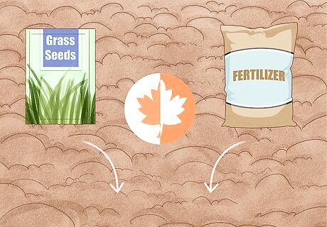 Seed and fertilize your lawn in the fall. Beetles don’t tend to lay eggs in grass that’s long and thick. By seeding and fertilizing your lawn, you can repair any damage the grubs have done and deter new beetles from laying more eggs. In spring and fall, rake away dead grass from any brown patches. Water your lawn, then sprinkle new grass seed over any thin or dead areas. After reseeding, fertilize the lawn to help the dead patches regenerate and the new seeds to thrive.