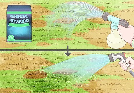 Use beneficial nematodes to get rid of any type of grub. The scientific name for these is Heterorhabditis bacteriophora, and they are microscopic, parasitic worms that invade grubs and release bacteria that kill them. It’s important to note, however, that this is a long-term method, and it can take the worms up to three years to fully control your grub problem. For the best results, apply the beneficial nematodes in the late afternoon, and water the lawn immediately after applying them. Because beneficial nematodes need to invade the bodies of grubs in order to propagate, you must choose between using this method or using a chemical pesticide. These worms may be sold under the name Hb nematodes, and you can buy them through gardening stores, catalogues, and online.