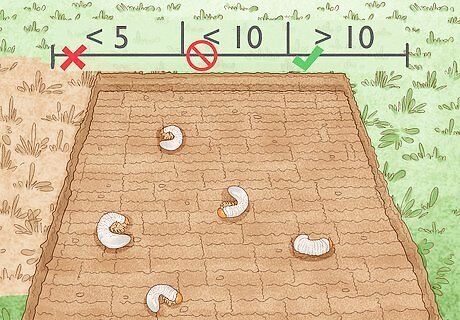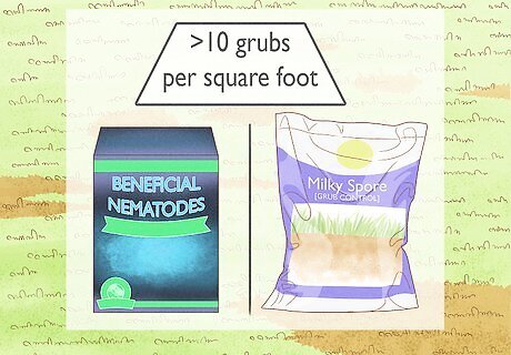 Decide if you need to treat. Even if you find grubs in your lawn, it’s possible that you may not have to get rid of them, depending on how many there are. A few grubs aren't actually going to hurt your lawn or cause too much cosmetic damage, especially if your lawn is healthy. There is no need to take action to get rid of the grubs if you find fewer than five per square foot. If you find more than five but fewer than 10 grubs per square foot, you'll only need to treat your lawn if your grass isn't healthy. Regardless of the state of your lawn, you'll need to get rid of the grubs if you find more than 10 per square foot.
