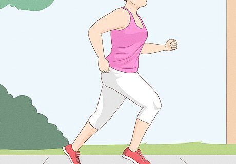 Exercise more. Studies show that people who exercise regularly don't experience menstrual cramps as severely as people who don't exercise regularly. Exercising throughout the month will help keep your pain to a minimum, and continuing to exercise while you're actually feeling cramps can help loosen your muscles and make you feel better. Do cardio exercise like running, swimming, and biking throughout the month. Add weight training to your routine, since it strengthens your muscles and improves overall health. While you're actually feeling cramps, lighter exercises like yoga or walking can help your cramps go away.
