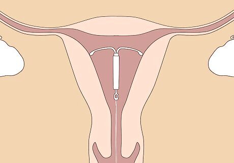 Get a progestin IUD inserted. This is a device that is inserted directly into the uterus. It functions both as contraception, and has the added benefit of greatly diminishing menstrual flow and menstrual cramps. Some people find that their period almost disappears when they are using a progestin IUD (the bleeding and cramping becomes very light, and for some women it can go away altogether). Getting a progestin IUD may be more expensive upfront (speak to your doctor about the costs, which are usually a few hundred dollars); however, they are often covered by insurance and you can leave it in and it is effective for up to five years. Having a progestin IUD inserted is one of the most effective long-term solutions for alleviating painful menstrual cramps. The progestin IUD is also the "gold standard" of contraception, which is the term doctors use to describe the fact that it is the number one most effective way to prevent unwanted pregnancies.