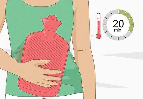 Use a heating pad or a hot water bottle. Lie down and place the pad or bottle over the area that hurts. Just rest for about 20 minutes to half an hour and let the heat work its magic. Always wrap a heating pad in a thin cloth or towel to avoid burns. Menstrual cramps are located in the uterus, which contracts to release its lining when you have your period. The uterus, like any muscle, relaxes in response to warm temperatures, so applying some heat to your abdomen may help relieve cramps. If you don’t have a heating pad or hot water bottle, take a hot bath or shower. Sprinkle in some lavender or rose bath beads or essential oils to help you relax even more. Make sure you do not fall asleep while the heating pad is on you.