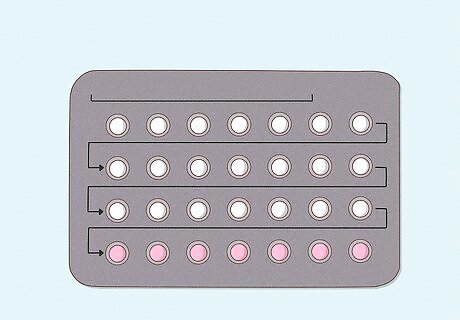 Consider taking hormonal birth control. Birth control contains estrogen and progestin, hormones that thin the uterine lining so that the uterus doesn't have to contract as much to release it. That means that women on birth control tend to have less severe cramps. To get birth control, see a health provider to get a prescription. Hormonal birth control may be administered in the form of pills, shots, a vaginal ring, implant, an IUD (a small device inserted into your uterus), or a patch. Work with your doctor to choose the one that's right for you. Another option is to try progesterone-only treatment. This is usually tried as a secondary measure if the birth control pill does not work; however, for some people, it seems to be more effective. Hormonal birth control is a strong drug that has side effects. Do plenty of research before deciding to take it as a way to relieve cramps.