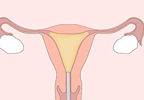 Consider endometrial ablation. If you are an older woman who is no longer seeking to become pregnant, another way to handle painful menstrual cramps is through a surgical procedure called endometrial ablation. What this means is that a device is inserted through your vagina into your uterus, and the menstrual tissue lining the uterine wall is "burned off," or removed. You will be under general anesthesia at this time, so you will not feel any pain. The next time your period is supposed to come, there will be very little to no menstrual tissue left to become inflamed. As a result, you will experience minimal to no bleeding at the time of your period, and it should also make a notable difference in getting rid of your pain. Your surgeon will aim to remove 90% of the uterine endometrial tissue at the time of surgery, so often about 10% remains. This is to make sure that your doctor does not accidentally damage the uterus itself.