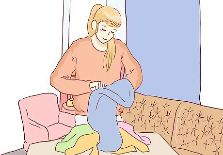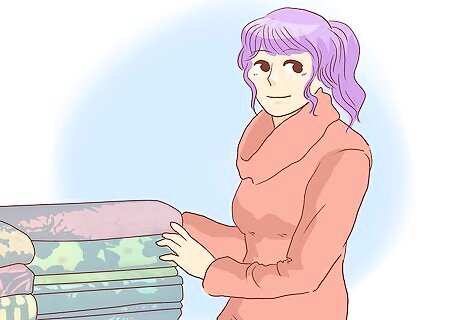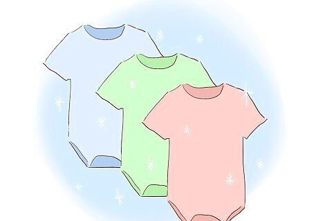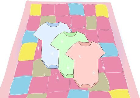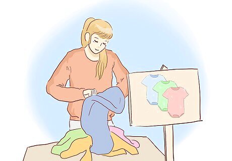 Save the outgrown clothes for siblings. Often when a couple is just beginning their family, they will put away the outgrown baby clothes that are still nice and save them for the other children that they plan to have. This is a great way to cut back on the cost of baby clothes for the future siblings. In order to be sure that the baby clothes are in the best condition when they are needed for the future siblings, they should be laundered and dried before storing. They should be folded neatly and stored in dresser drawers or clothes storage containers. It is important that they are not stored where sunlight reaches them because it can cause fading.