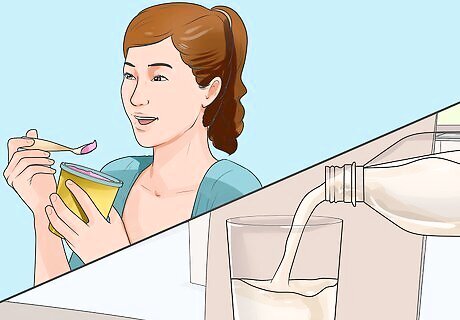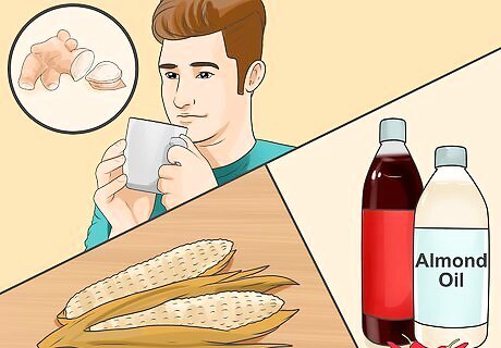 Consume dry, light, and hot foods if you have a Kapha mind-body type. Go for foods that have a bitter, pungent, or astringent taste and avoid foods that have a sweet, sour, or salty taste. Have very low amounts of dairy products and only have low-fat milk or low-fat yogurt. You should only have honey as a sweetener and avoid other sources of sugar, as Kaphas are prone to issues like clogged sinuses, allergies, colds, and weight gain. You should have two to three cups of ginger tea a day to help with digestion and overall health. You can have all types of beans as a protein in your diet, but limit your consumption of kidney beans, soybeans, and soy-based foods like tofu. Go for natural grains like corn, millet, buckwheat and rye but have less oats, rice, and wheat. Go for lighter fruits like pears, apples, apricots, pomegranates, and cranberries and have less heavier fruits, such as bananas, melons, dates, figs, avocados, coconuts, and oranges. Do not have any dried fruits. Kaphas can consume lots of vegetables in all varieties except for sweet and juicy vegetables like sweet potatoes, zucchini, and tomatoes. When cooking, use small amounts of extra virgin olive oil, almond oil, sunflower oil, mustard oil, and ghee and use a variety of pungent spices like pepper, ginger, cayenne, and mustard seed.