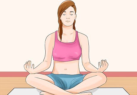 Do breathing awareness meditation when you feel a craving for unhealthy foods. As part of the Ayurvedic diet, you can use breathing awareness meditation to distract yourself from an emotionally based craving for unhealthy foods or to prevent food binging. Practice meditation whenever you feel a craving coming on. Sit in a quiet area with your hands by your sides and close your eyes. Breathe deeply, focusing on your breathing as it flows from your lungs out through your nose. Inhale and exhale with awareness. Let your attention follow your breath as it moves from your lungs and out your nose. Keep your eyes closed and continue to focus on your breath, pushing out all outside thoughts. Do this for five to ten minutes.