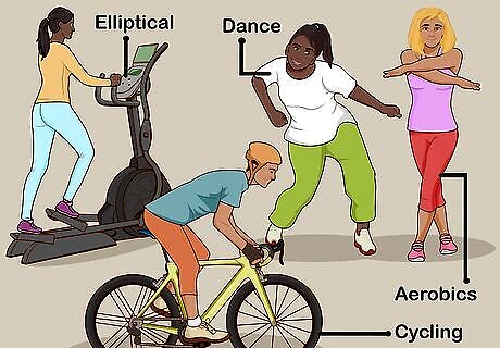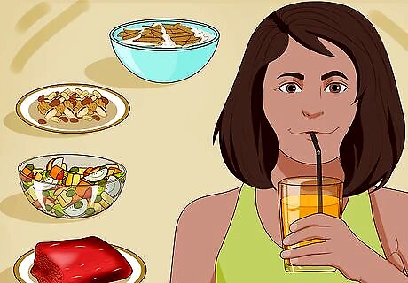 Eat something small before you workout. You need to make sure you body has some energy before you start to get the most out of your workout. You will find that you will have better results and can last longer on the treadmill or in that cycling class if you have a little food in the stomach. Aim to eat a small meal 1 hour before working out. Some good, balanced ideas include: Fruit smoothie with protein powder. Peanut butter and jelly. Whole wheat pasta with a little sauce and grilled chicken. Yogurt and granola with fresh fruit.