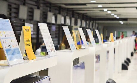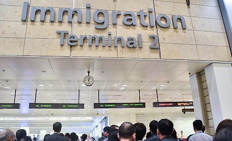 For international flights, follow signs to Immigration. There will likely be separate lines for citizens and foreign visitors; make sure you're standing in the right one. Note that if you are traveling to the EU, you can go through the EU line if you hold an EU, Swiss, Norwegian or Icelandic passport. Have your passport and immigrations card ready to show to the immigration staff at the desks. Once you are called over to a desk, the immigration official may ask you some questions as well as check your passport. This may seem intrusive, but the immigration staff are there to protect borders from illegal entry; co-operate with them and answer questions politely. It might be a good idea to have names and addresses with you to give to the immigration official, such as the address and phone number of where you are staying and the names of any people you know.