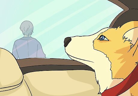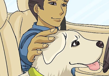 Keep your pet inside. Many dogs instinctively want to stick their heads out the window, but this can cause injury if any rocks or debris go flying up off the road. The increased airflow can also harm a dog's lungs if she's allowed to keep her head out the window. Instead, keep your dog safely secured in the backseat, and if you open the windows be sure they're not open enough that your dog can fit her head outside.