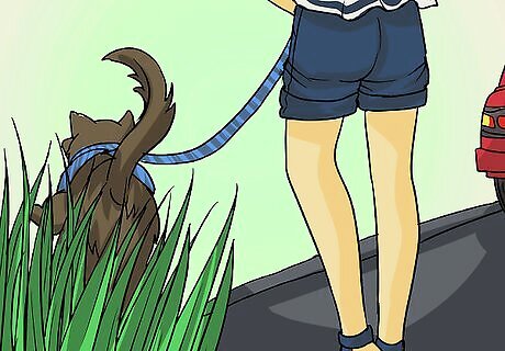 Make frequent rest stops. Your dog will need regular bathroom breaks - in fact, she may need to stop more often than she goes at home due to stress and/or motion. Keep your dog on-leash during all breaks and make sure she has sufficient time, as an exciting or unfamiliar environment may make it difficult for her to pass waste.