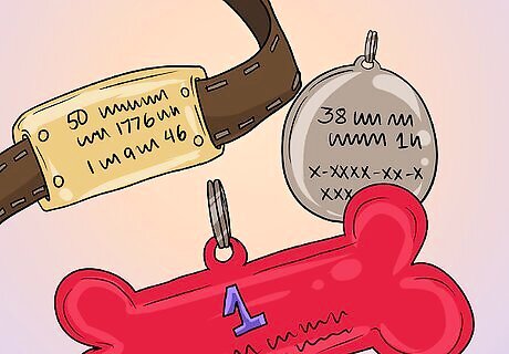 Consider having your dog microchipped. If your dog has never been microchipped, you may want to have your vet insert one in your dog. It is a quick and relatively painless procedure, usually administered into the shoulder, that could end up saving your dog's life. If your dog already has a microchip, contact the microchip registry and ensure that your address and contact information are all up to date. Microchips protect your dog in case she slips out of her collar. In the event that your dog gets lost, any veterinarian or dog pound employee who scans your dog will be able to tell her unique registration number and a phone number for the registry where your dog is registered. Dogs microchipped in the last few years will have received a universal microchip, which can be detected on any scanner in any state. Older microchips were brand-specific to a certain type of scanner. Ask your veterinarian or the microchip registry company about the type of chip used on your dog to ensure it is a universal chip.
