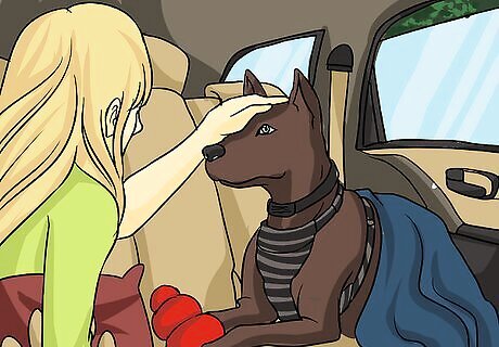 Never leave your dog alone. If you make stops along the way, do not under any circumstances leave your dog alone in the vehicle. Even in mild weather, a dog can experience severe health problems and even death as a result of being left unattended in a vehicle. Even if you open the windows during warm weather, your dog can still develop a heat stroke over a relatively short period of time. Cold weather can be just as dangerous as hot weather. Leaving your dog alone in a cold car during winter can cause hypothermia and may lead to death.