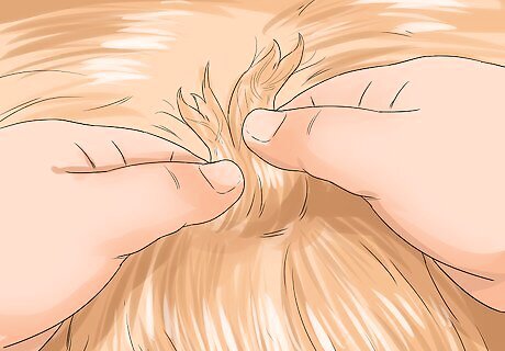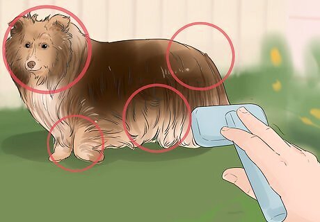 Look for mats and knots. As your dog’s hair grows longer, it is important to look for mats in its coat while brushing. Mats occur in areas on the coat where there is rubbing or movement, or where old hair gets caught up with new, growing hair. Mats can be teased out with a comb to prevent them from becoming knots, which generally must be removed by gently dragging the mat splitter across the hair to cut the knot out. The key areas on your Rough Collie to look for mats are: The front legs, particularly near the top where the leg joint joins the body The hind legs, especially at the bottom where grass and twigs might get caught The rear, particularly near the base of the tail The tail