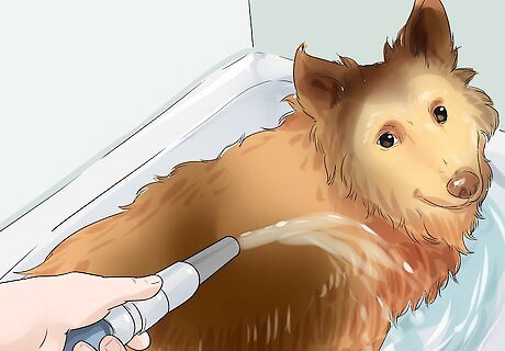 Shampoo the dog. Place a towel or non-slip mat on the shower floor and have your Rough Collie stand on it. Wet its coat from its rear upwards, then apply dog shampoo (available at pet stores) and lather in the same direction. To make things easier, try brushing shampoo through your dog’s coat rather than lathering it with your fingers. Never use human shampoo on your dog- it is harsher than dog shampoo and will wash away the essential oils from your dog's coat, which can leave your dog vulnerable to bacteria and parasites.