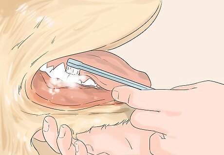 Clean its ears. Once a week, check your Rough Collie’s ears for redness or signs of infection (e.g. discharge or odor). If you see waxiness or dirt inside of the ear, clean it carefully. Brace your dog’s ear gently and wipe the inside of it with a wet cotton cloth. Contact your veterinarian immediately if you see signs of infection.