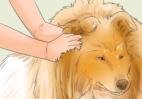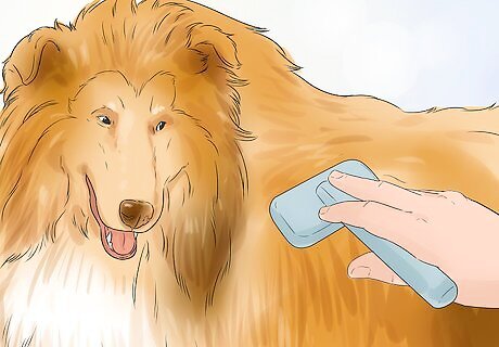 Give your dog a pre-bath brush. Rough Collies are naturally clean dogs and only require bathing every 6-8 weeks, less regularly than other breeds. Given the volume and length of hair that Rough Collies have, it is best to brush out mats and excess hair before bathing them to allow water to penetrate their coat more easily. Brush from your dog’s rear, upwards, against the grain of the hair. Be sure to bathe your dog during its molting period, which occurs about once a year for males and three times every two years for females.