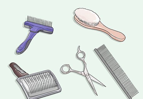 Buy the right tools. Caring for a Rough Collie’s thick double coat can be challenging, but it is manageable with the right tools. While there are a variety of products and specialized tools on the market, you can properly groom your pet with a few basic items. Visit a pet store to buy: A bristle brush A long pin brush A basic comb Grooming scissors A matt splitter