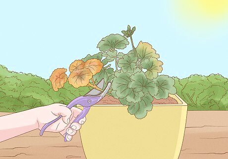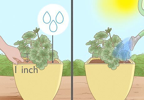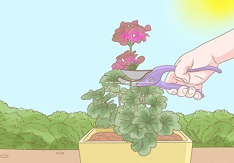 Choose a pot with holes in the bottom. Geranium roots will rot if they sit in water for an extended period of time, so adequate drainage is essential.