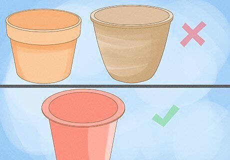 Pick a pot made with a material that suits your needs. If you plan on moving the plant around, avoid heavier clay pots and stick to plastic.