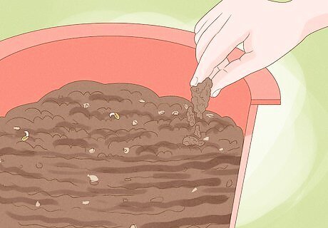 Cover the seeds with soil. Only apply a light layer of soil, as too much soil may prevent the seeds from germinating.